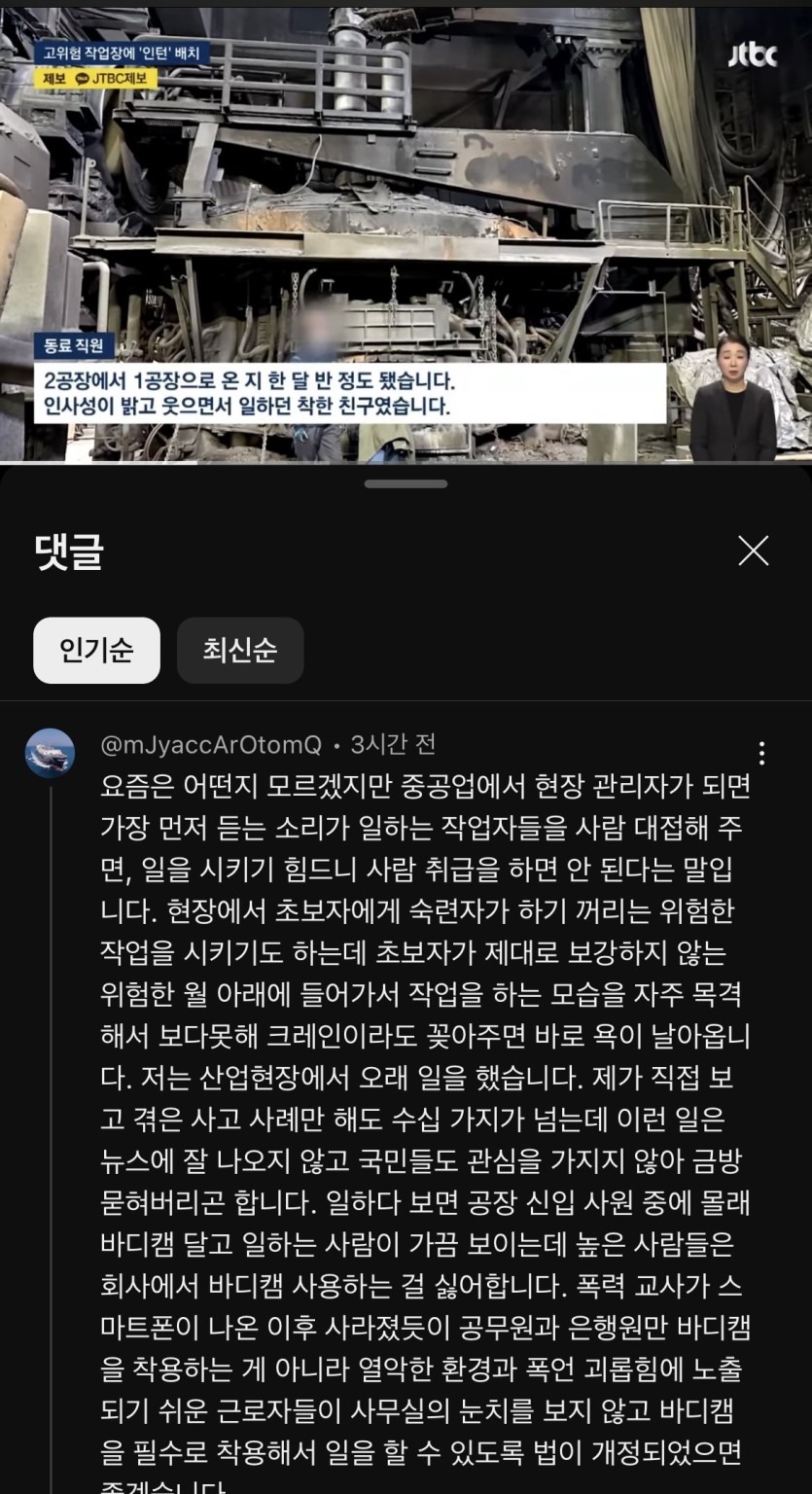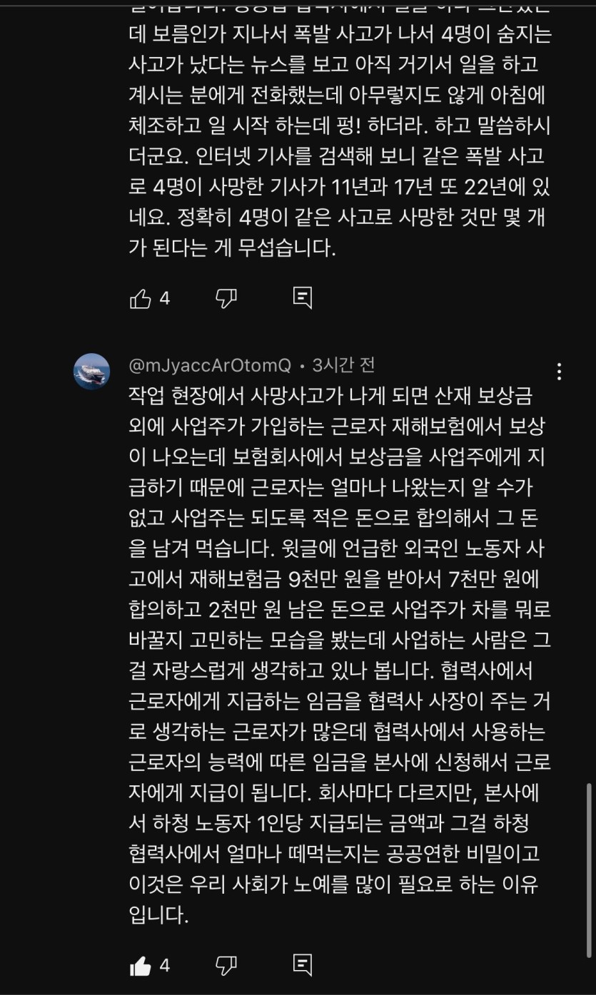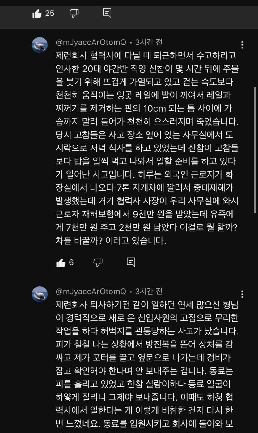 현대제철 사망사고 충격적인 현직자 경험담 유튜브 댓글