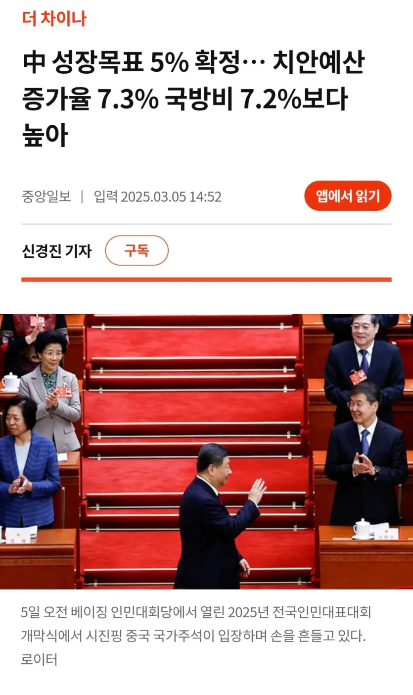 그동안 공산당의 지지이유였던 경제성장이 사라지니 사회불만이 커지고 국방비보다 더 많은예산을 치안에 쓰는중