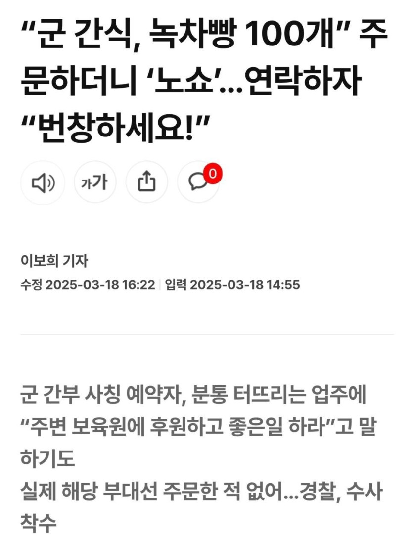 녹차크림빵 100개 노쇼 논란 ㄷㄷㄷ