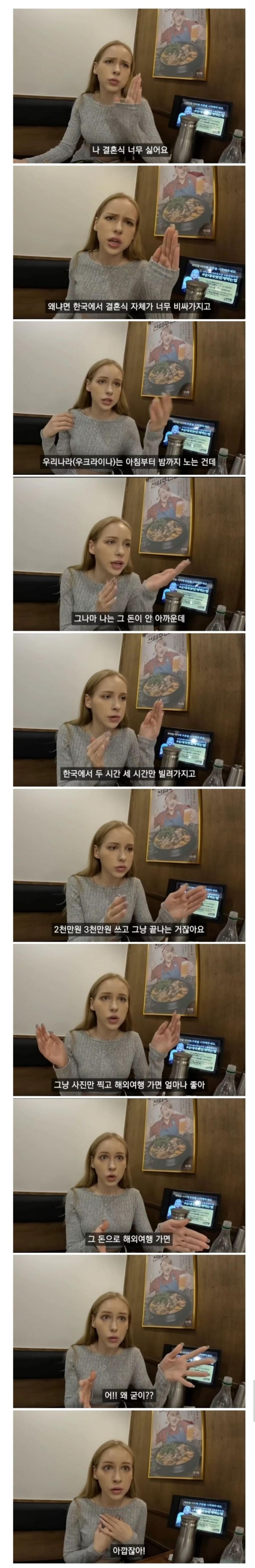 한국 결혼식 돈이 아깝다는 우크라이나 처자