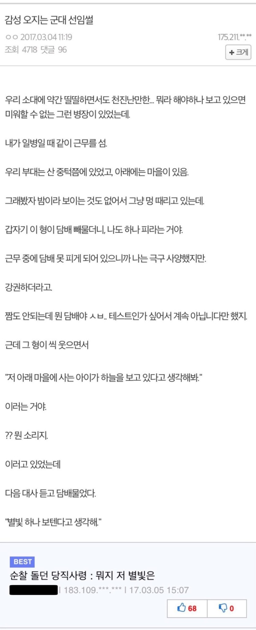감성 충만했던 군대 선임