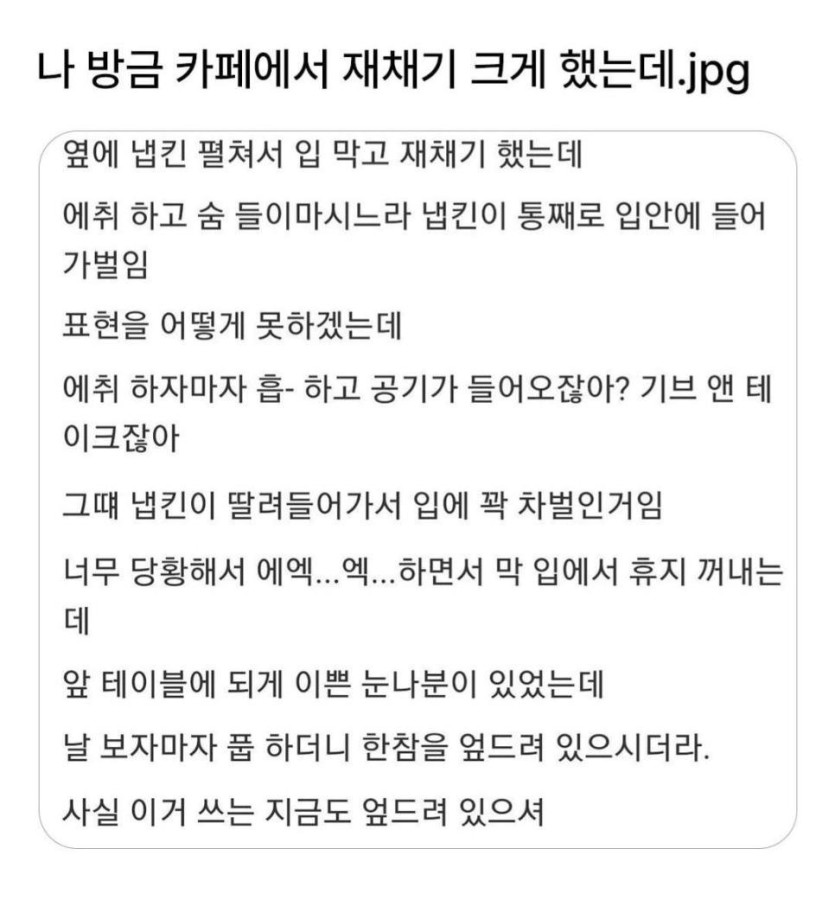나 방금 카페에서 재채기 크게 했는데