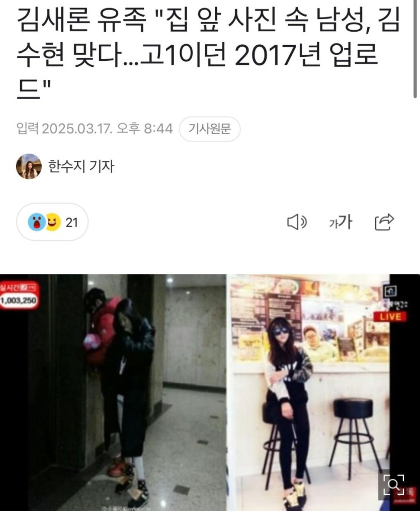 김새론 유족 "집 앞 사진 속 남성, 김수현 맞다…고1이던 2017년 업로드"