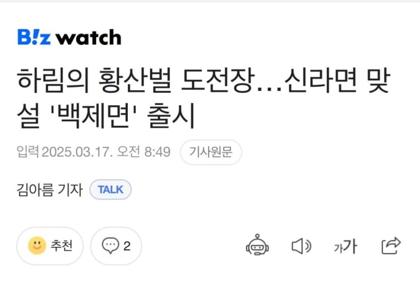 신라면에게 맞설 백제면 출시