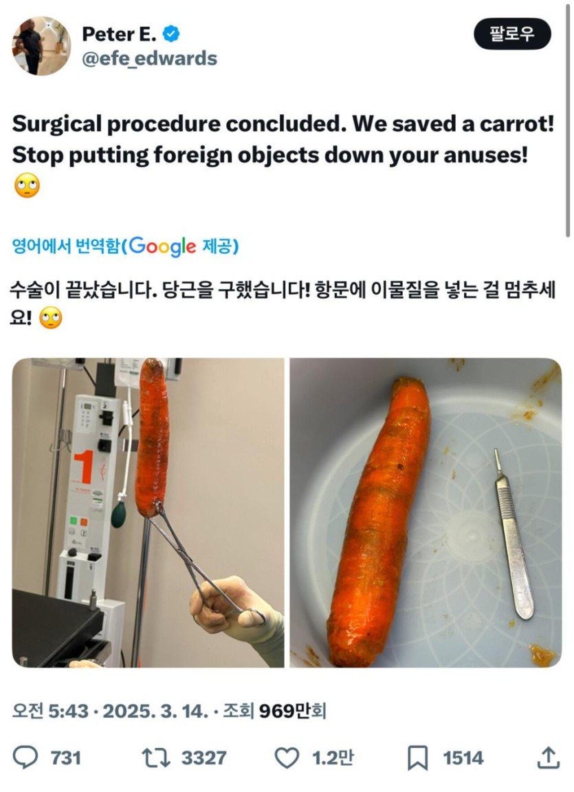 1차 세계대전 포탄이 항문에 꽂힌 채 나타난 남자, 병원 대피