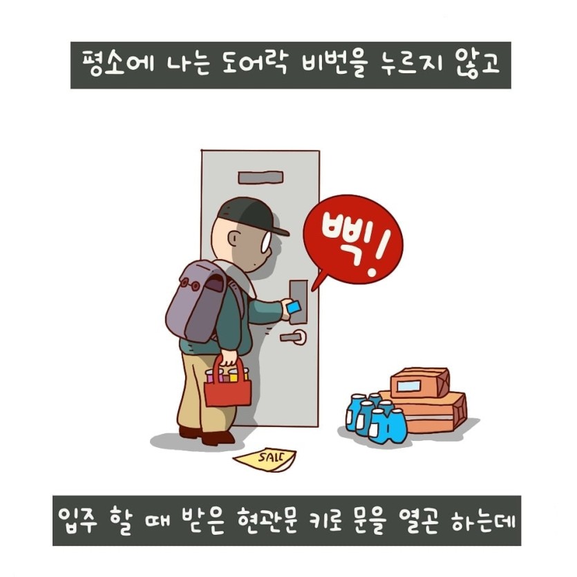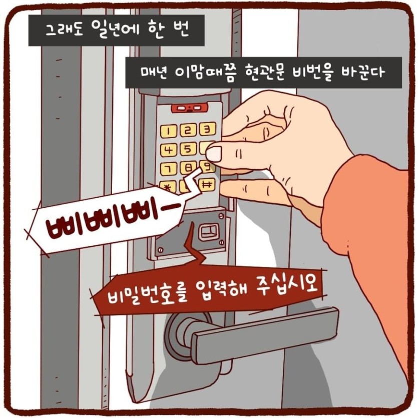 [유머] 도어락 비밀번호는 기억하기 쉬운걸로 하라고.jpg