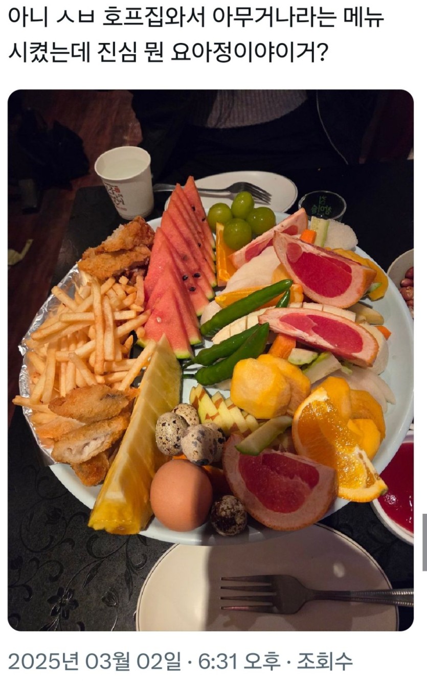 호프집와서 아무거나라는 메뉴 시켰는데