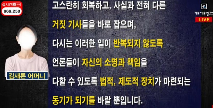 김새론 어머니 입장문 전문