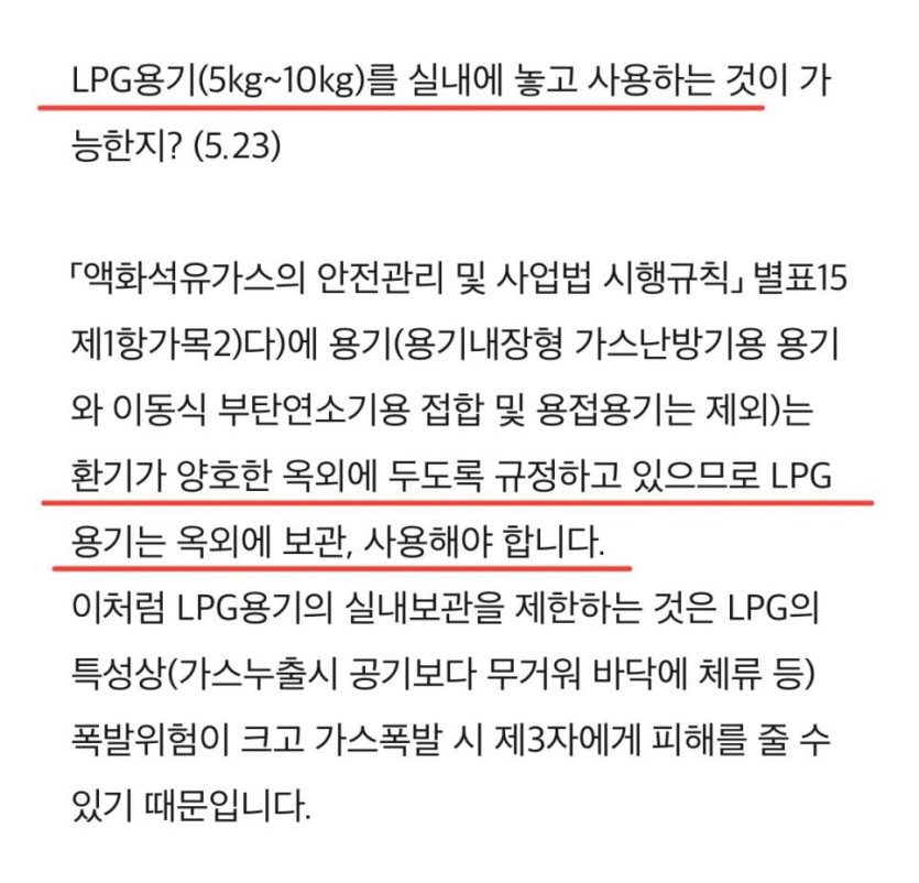 한국에선 “LPG가스”와 “실내” 는 만나선 안된다 ㅎㄷㄷ