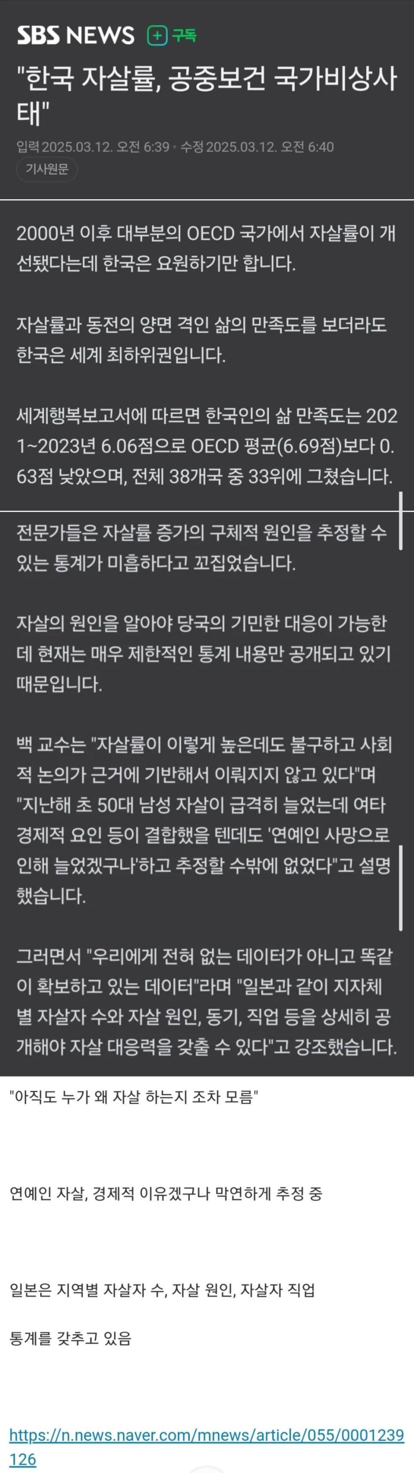 [기타] 전세계 자살 1위 국가 근황...