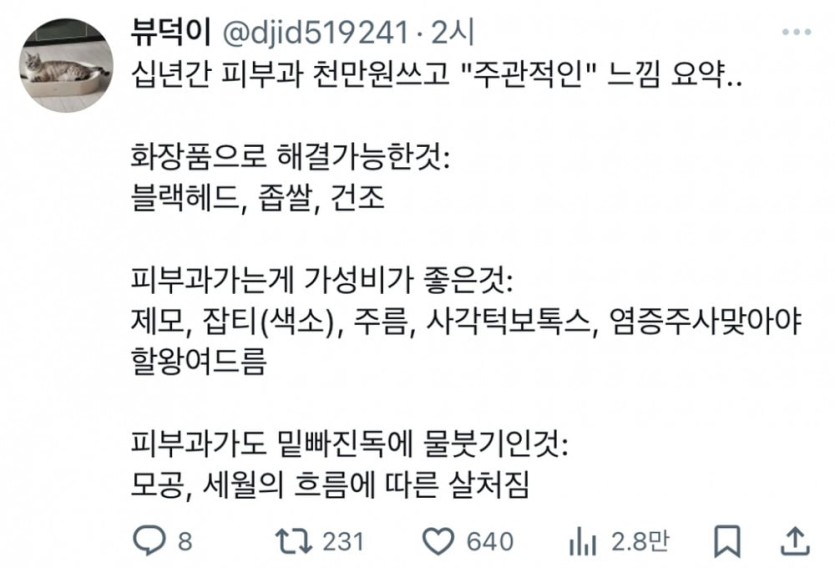 피부과 천만원쓰고 "주관적인" 느낌 요약