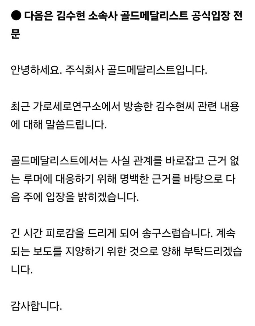 명백한 허위 사실이고 관련 근거를 다음주에 발표한다고함
