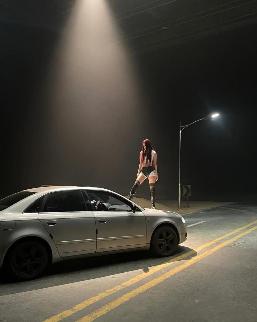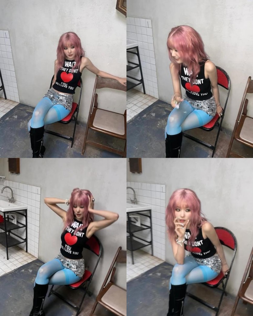 퇴폐미 넘치는 슬기...하늘색 + 흰 레이스 스타킹 밴드 야벅지