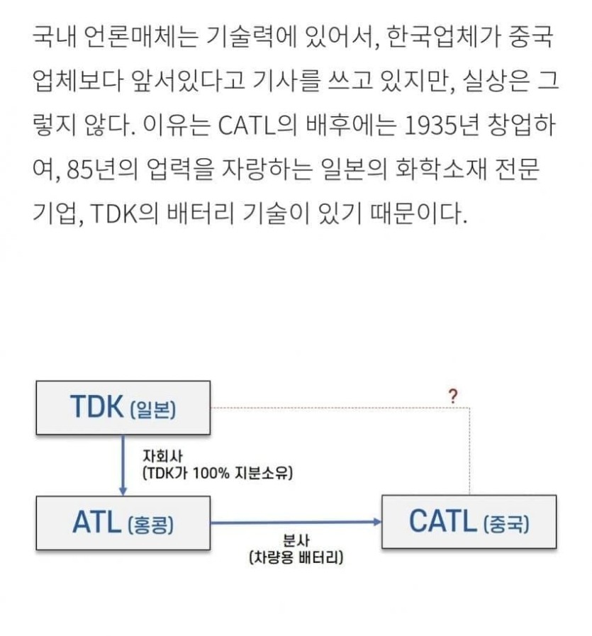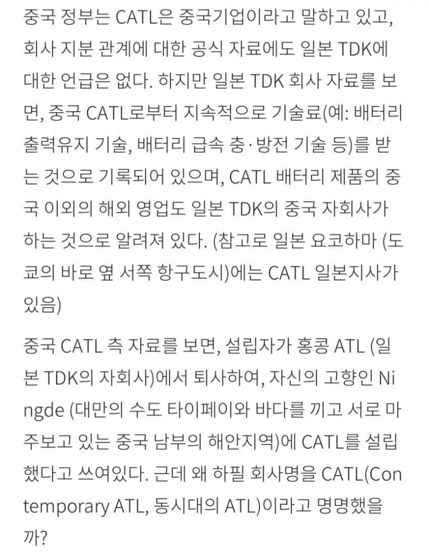 중국 2차전지 1위 기업 catl의 비밀 rh1 0 306 0 2025.03.12 22:15 세계 2차전지를 호령하는 중국기업 catl은 일본 기업 tdk를 모회사를 두고 있는 자회사 일본기업에게 매년 많은 로열티내고 기술협력으로 영위하는 회사 중국 2차전지 1위 기업 catl의 비밀 0