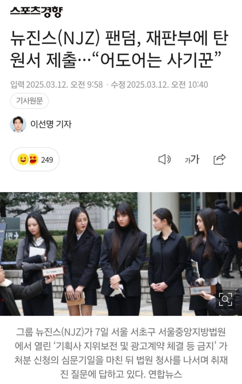뉴진스 팬덤이 탄원서를 넣고 있다고 한다