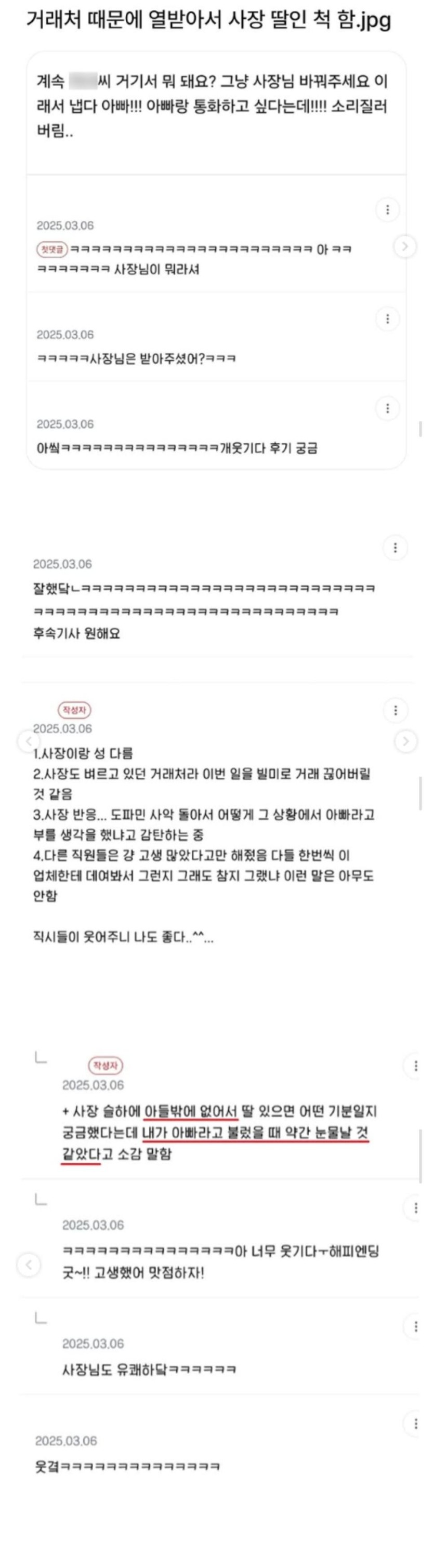 거래처 통화하다 열받아서 사장 딸인척 함