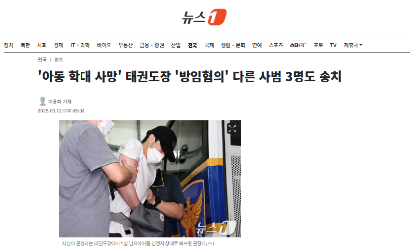 '아동 학대 사망' 태권도장 '방임혐의' 다른 사범 3명도 송치
