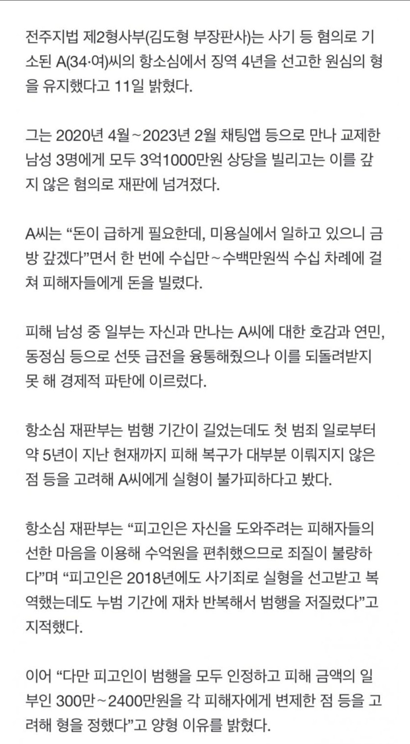 돈 급하게 필요한데…남자 친구들에게 3억여원 뜯어낸 여성 실형