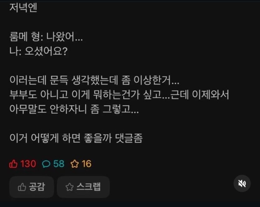 룸메형이랑 분위기 이상하다는 에타인.jpg