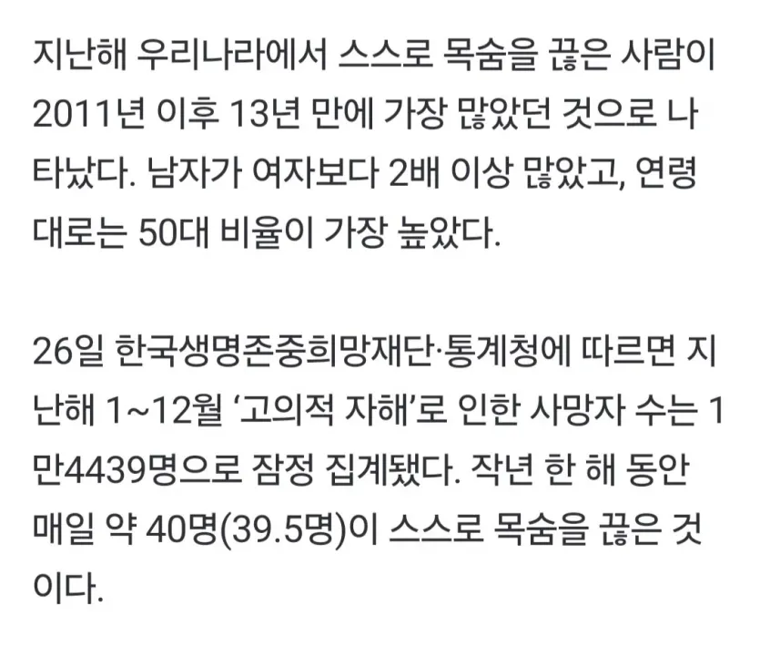 하루 40명씩 자살...13년만에 역대 최다