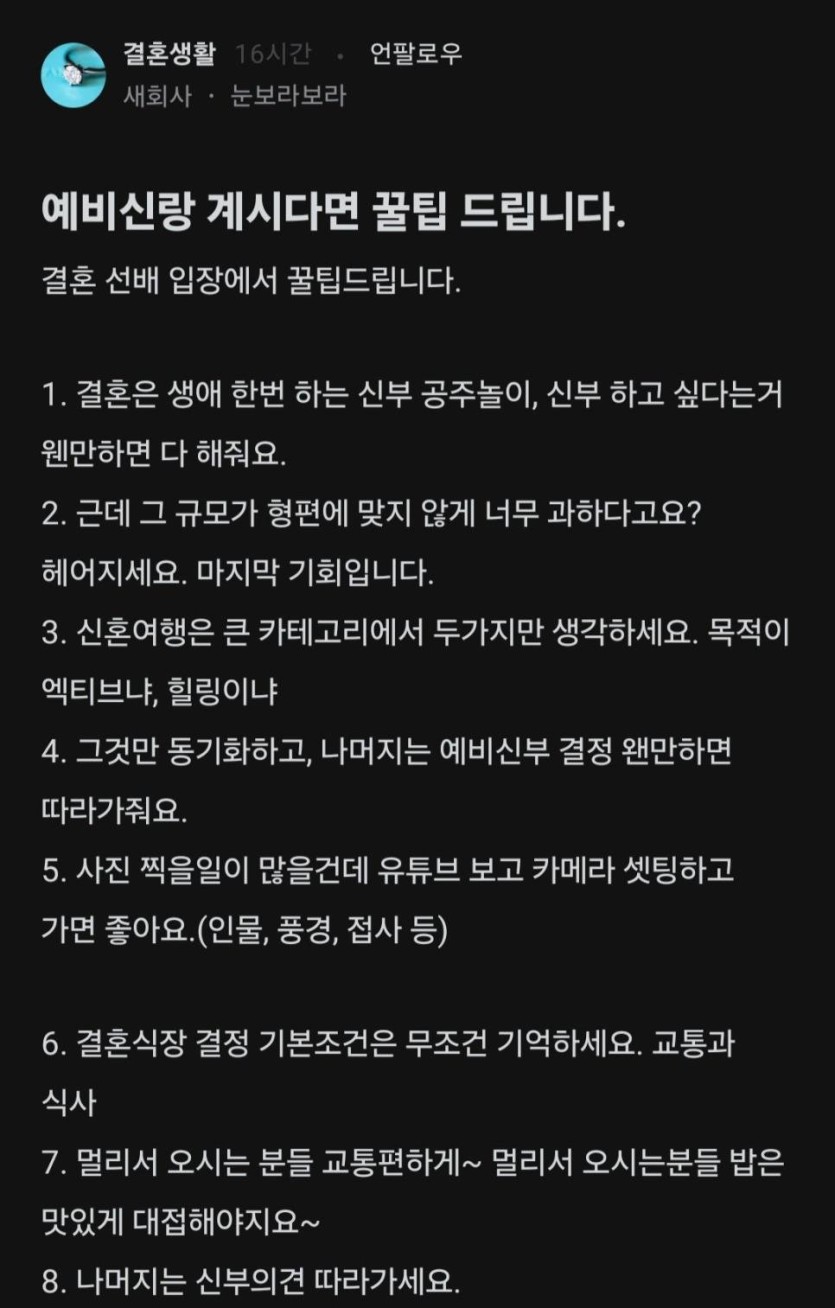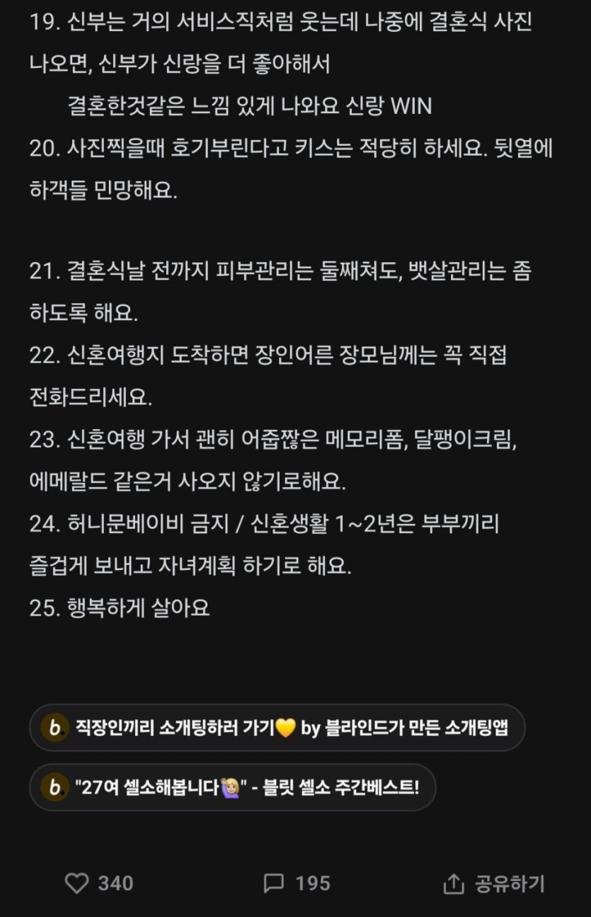 결혼앞둔 남성들에게 꿀팁.blind