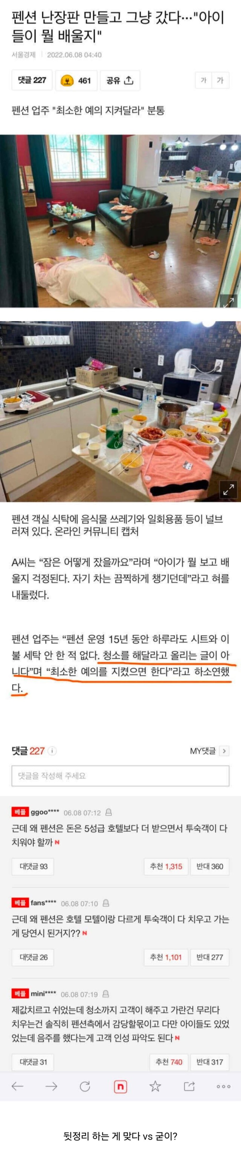 펜션 뒷정리 논란