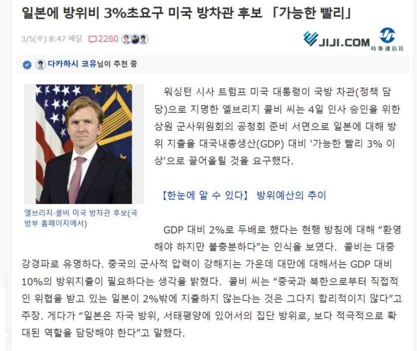 트럼프 "일본 방위비3% 올렸어? 아직 부족해"