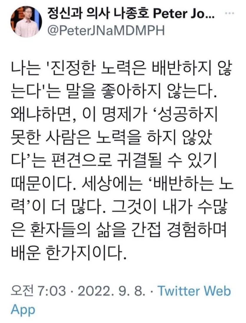 노력은 배신하지 않아 에 대한 정신과 전문의의 의견