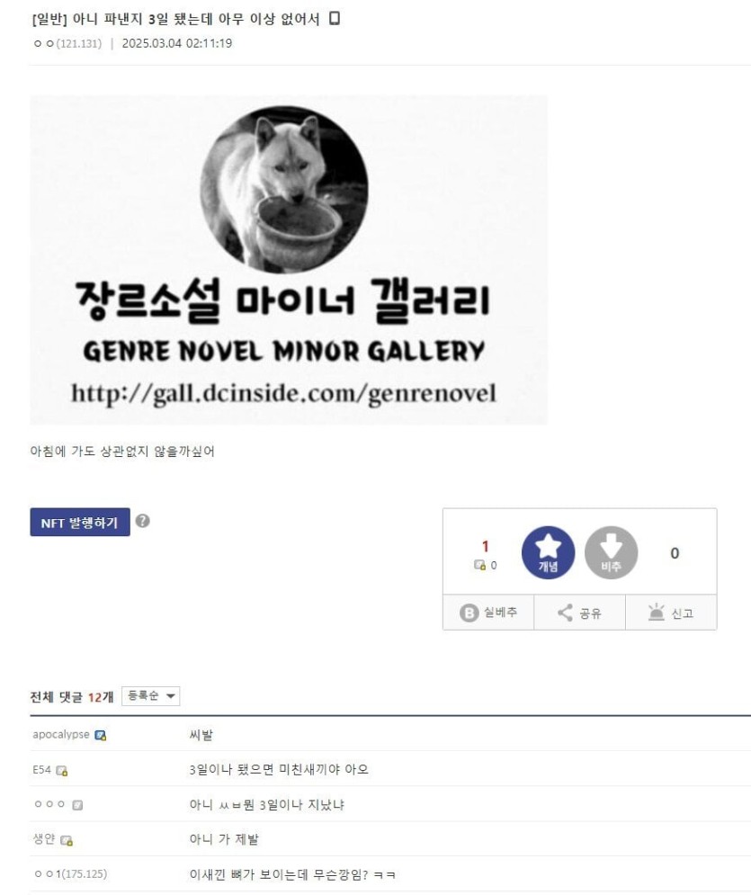 혐주의) 구내염 파낸다고 턱뼈 본 사람 근황 rh1 0 146 0 2025.03.08 16:15 날 밝으면 간다고해서 사람들 안심했었는데 안갈려고 함 ㅋㅋㅋㅋㅋㅋㅋ 결국 갔는데 ㄹㅇ 뼈 맞는거 같고 의사한테 욕먹었는데 슬쩍 그냥 깍아내면 안되냐고 물어보고 또 욕먹었다고 함 혐주의) 구내염 파낸다고 턱뼈 본 사람 근황 0