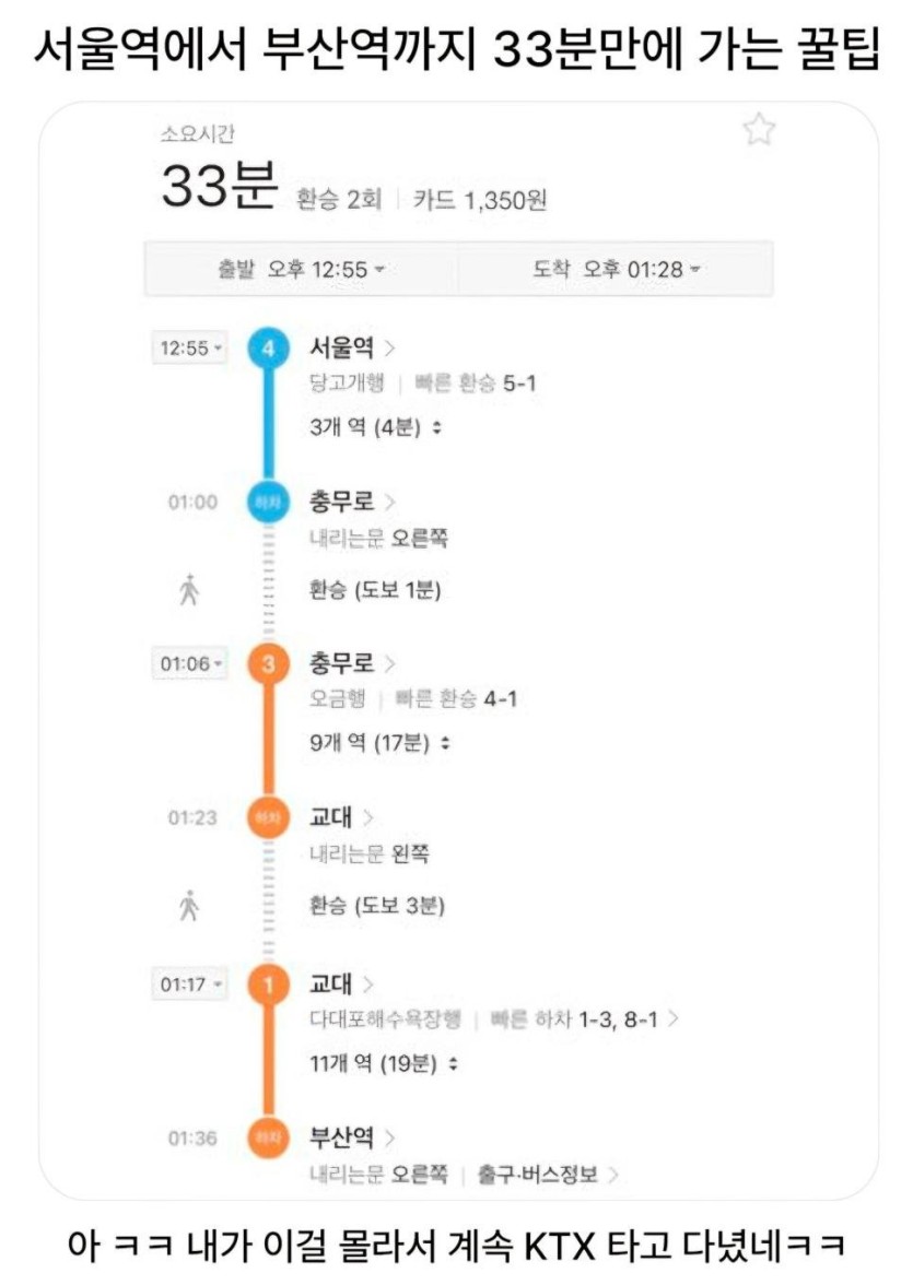 서울역에서 부산역까지 33분만에 가는 꿀팁