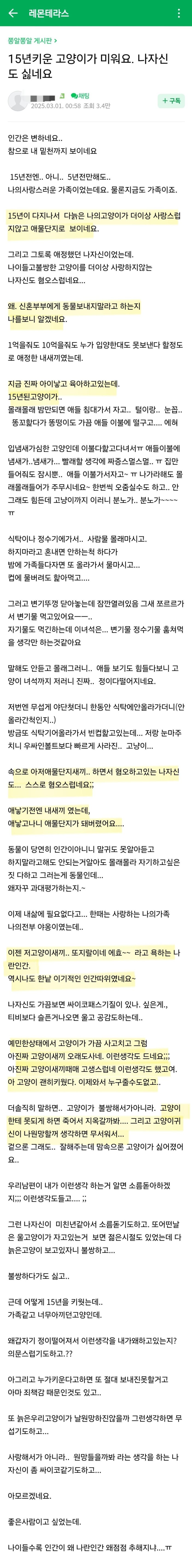 15년 키운 고양이가 혐오스러워요 (신혼부부에게 동물 입양 안 시켜주는 이유)