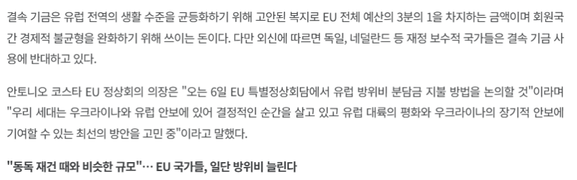 3. EU는 향후10년간 복지예산 감축해서 방위비에 천문학적인 돈 퍼부을 계획이 처음 논의됨