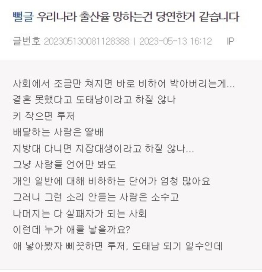 출산율 망하는 게 당연한 이유