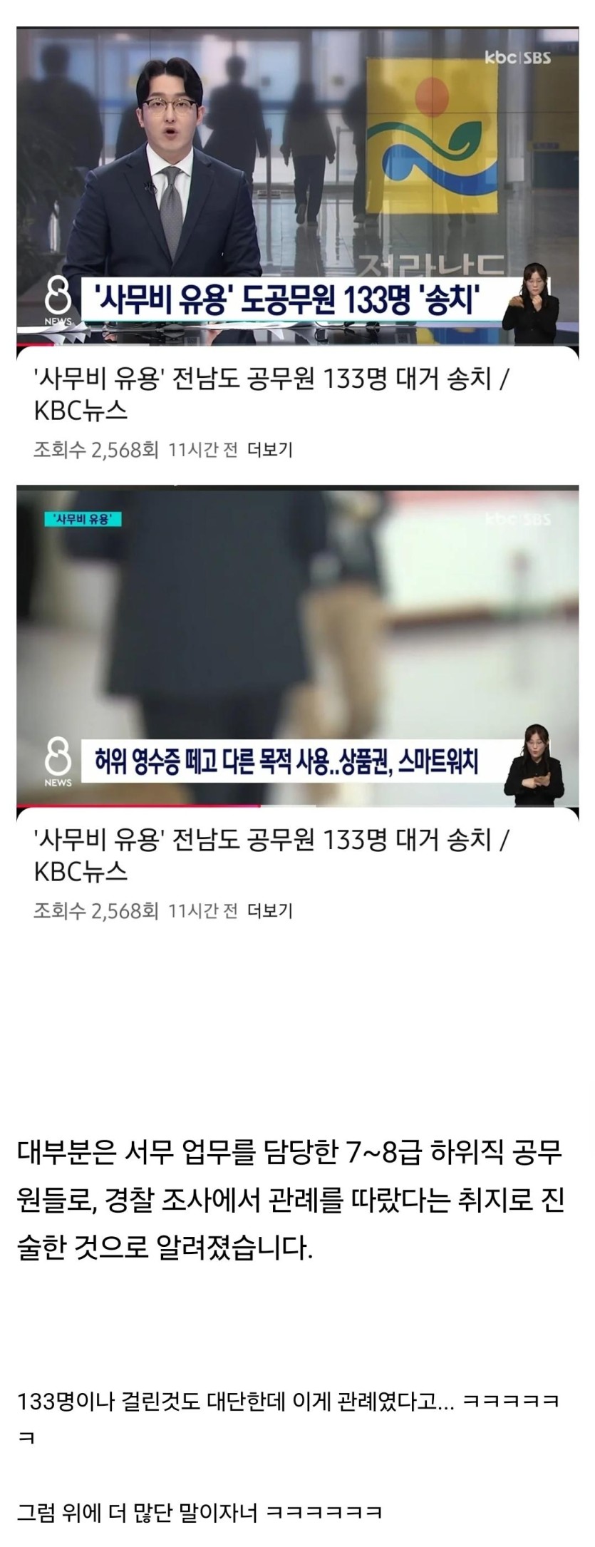 사무비 유용, 전남도 공무원 133명 검찰 송치