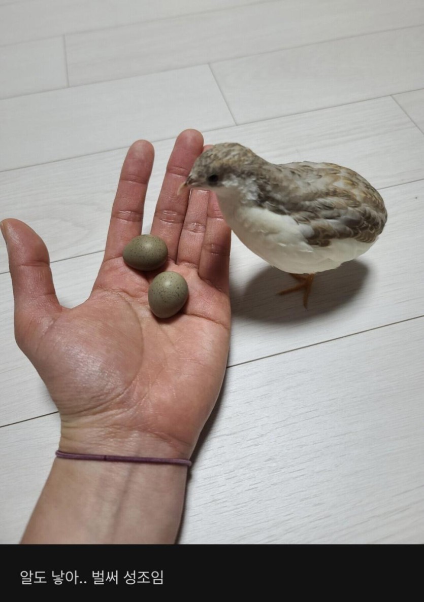 애완용 메추리 자랑하는 블라인드 유부녀