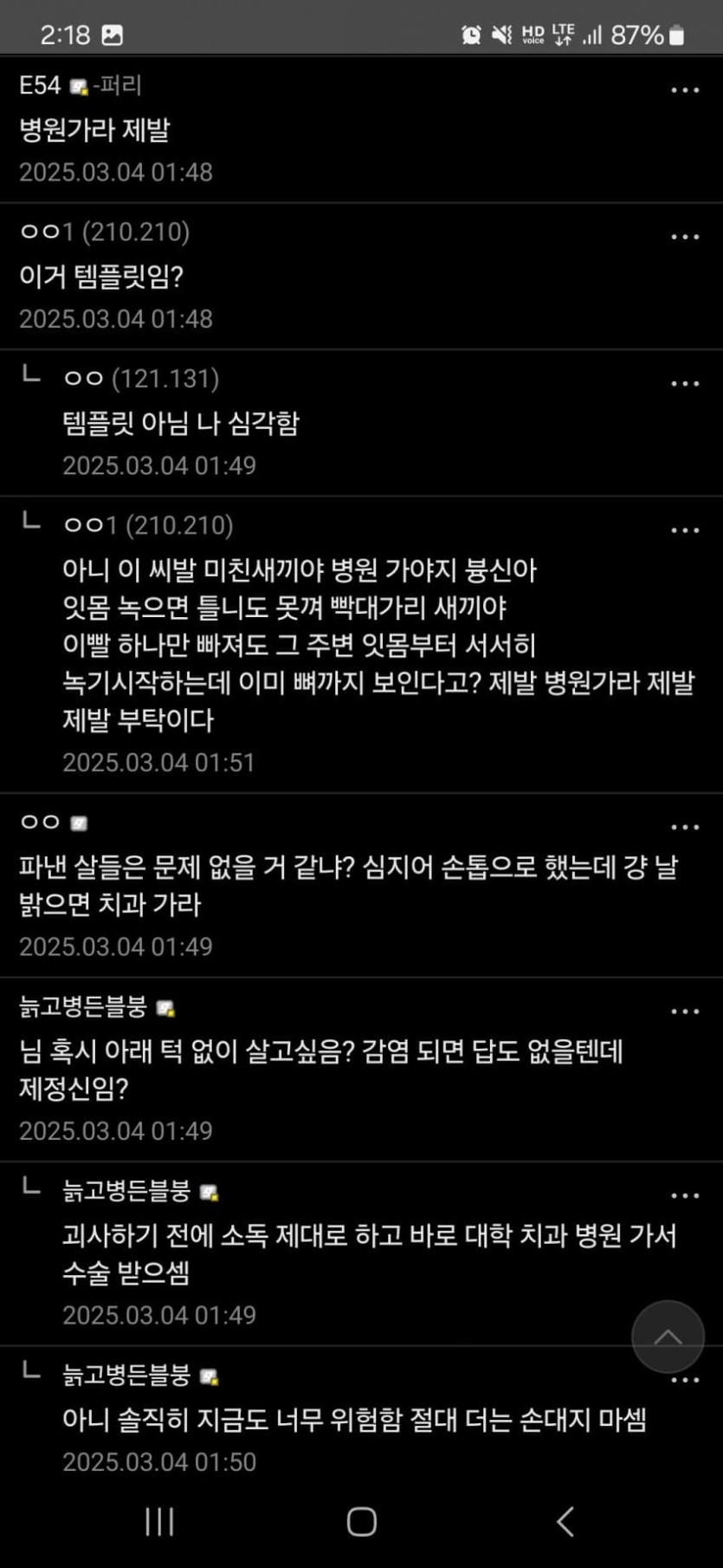 약혐)) 디시식 관우의 재림...잇몸파다 턱뼈나옴...jpg rh1 0 828 0 2025.03.04 13:45 오늘 새벽 장갤에 올라온글구내염 제거할려고보드카빨고 손톱으로 쑤시다 턱뼈 보였다함 ㄷㄷㄷ; 병원은 어떤곳일까... 0