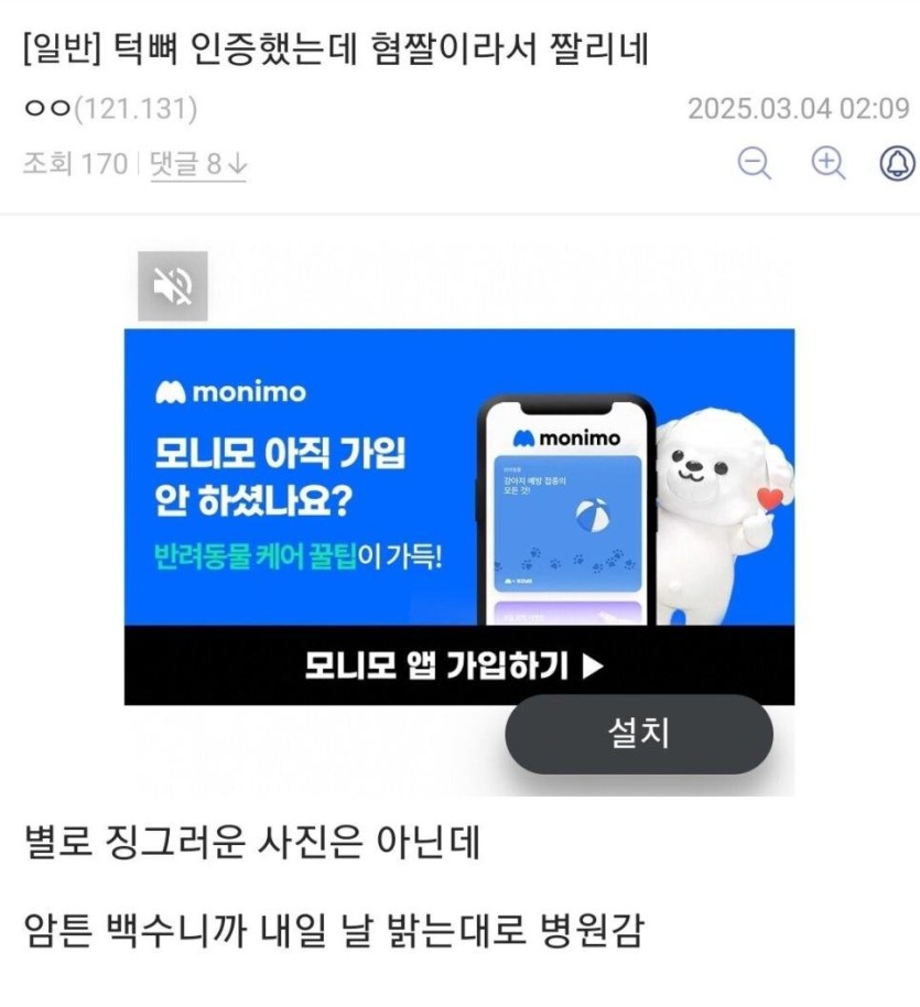 약혐)) 디시식 관우의 재림...잇몸파다 턱뼈나옴...jpg rh1 0 169 0 2025.03.04 13:45 오늘 새벽 장갤에 올라온글구내염 제거할려고보드카빨고 손톱으로 쑤시다 턱뼈 보였다함 ㄷㄷㄷ; 병원은 어떤곳일까... 0