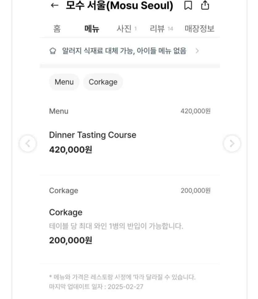 재오픈한 모수 서울 가격 합리적이네요 rh1 0 315 0 2025.03.04 14:15 디너 코스가 42만원인데국내탑 레스토랑이 이정도면 적당하죠100억 부자들한테는 체감가 4천원입니다 김밥한줄가격이죠 재산 1억 가진 사람들도 신라호텔 디너 먹으러가는데 예약이미 풀부킹일겁니다 0