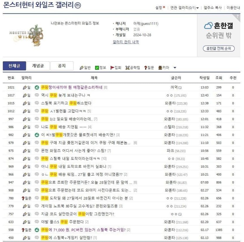 실시간 ㅈ된 쿠팡에서 몬헌구매한사람들 rh1 0 109 0 2025.03.04 09:45 구매했을때는 배송예정 27~28일인데.갑자기 배송예정일정 3월달로바뀌는중ㅋㅋㅋㅋㅋㅋㅋㅋㅋ 0