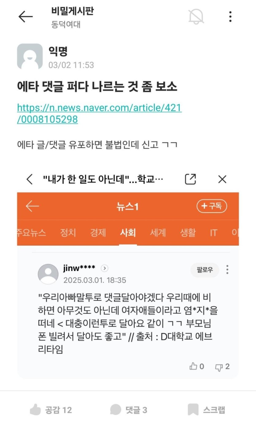 동덕여대 에타 글 퍼나르는 사람들 이제 큰일남 ㄷㄷㄷ;.jpg