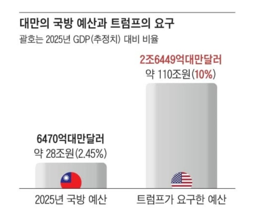 트럼프가 대만에 요구한 방위비..jpg ㄷㄷㄷㄷㄷ