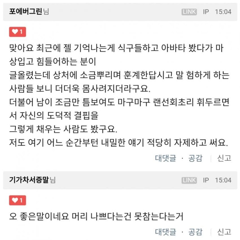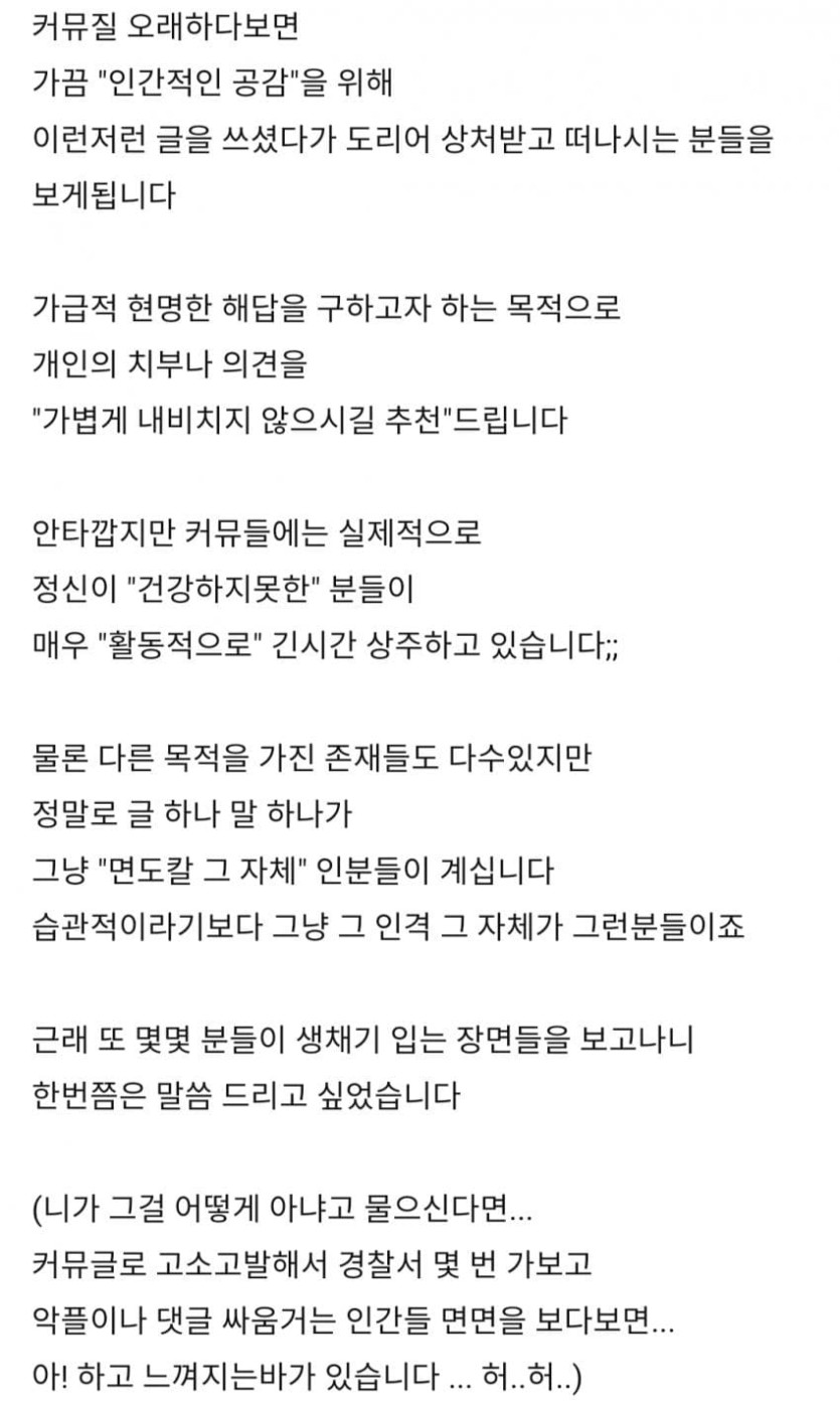 커뮤엔 온전한 정신 가진분들만 계시지 않아요