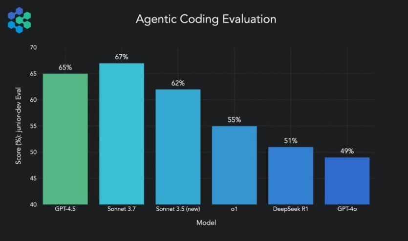 에이전트 코딩 벤치도 sonnet 3.7한테 따이고, 몇달전에 출시된 sonnet 3.6이라고 놀림받는 sonnet 3.5(new) 랑 비비는 모습