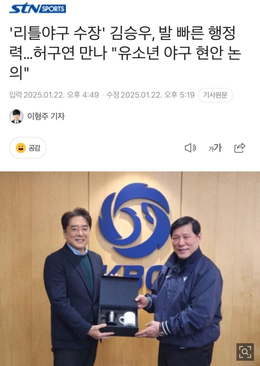 축협 난리난 와중 야구 근황 rh1 0 261 0 2025.02.26 23:30 작년 대체 외국인 도입하고 내년엔 아시안쿼터로 일본 독립리그, 대만, 호주유망주들 데려와서 리그 다양성 변화 꾸리고피치클락으로 경기시간 더 스피디하게 만들 예정유망주들만 선발해소 국제대회 성적 안좋으니 이젠 당시 성적 좋은 선수들로 뽑을 예정이라함유소년 아마 야구도 적극적으로 지원 예정 축협이 똥볼 차니깐 기본만 하는데 갓총재 되는 효과 ㅋㅋㅋ 0