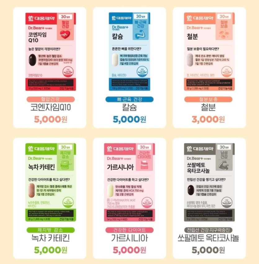 다이소 대웅제약 영양제 목록 rh1 0 229 0 2025.02.26 20:45 대충..5천원치고 비타민C, 밀크씨슬, 루테인, 오메가, 카테킨, 가르시아, 쏘팔메토, 콜라겐, 블랙마카 9개만 사도 ^^ 아 싸다. 0