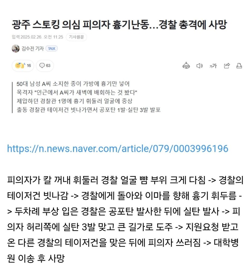 광주서 경찰 피습...피의자 실탄 맞고 사망