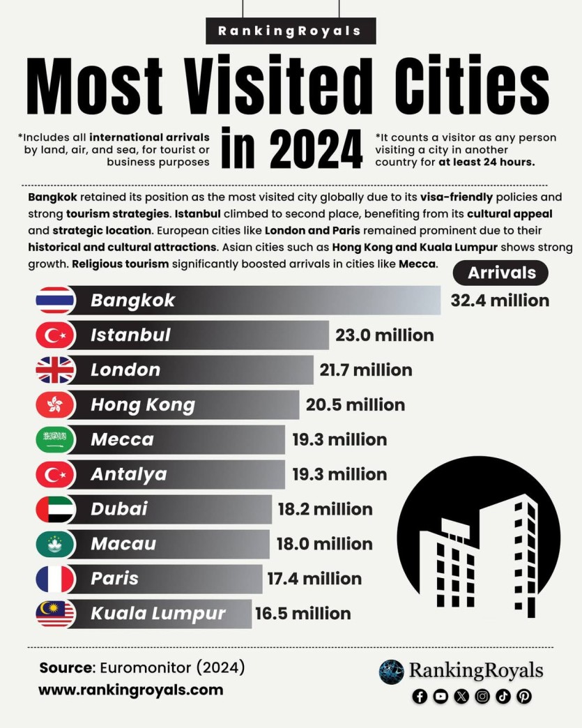 2024년 세계에서 가장 많이 방문한 도시