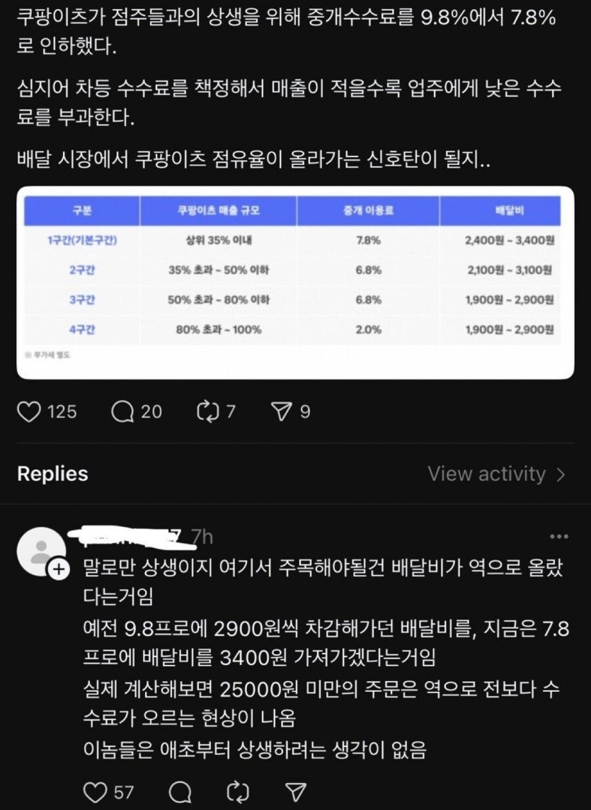 점주들과 상생한다는 쿠팡이츠 근황