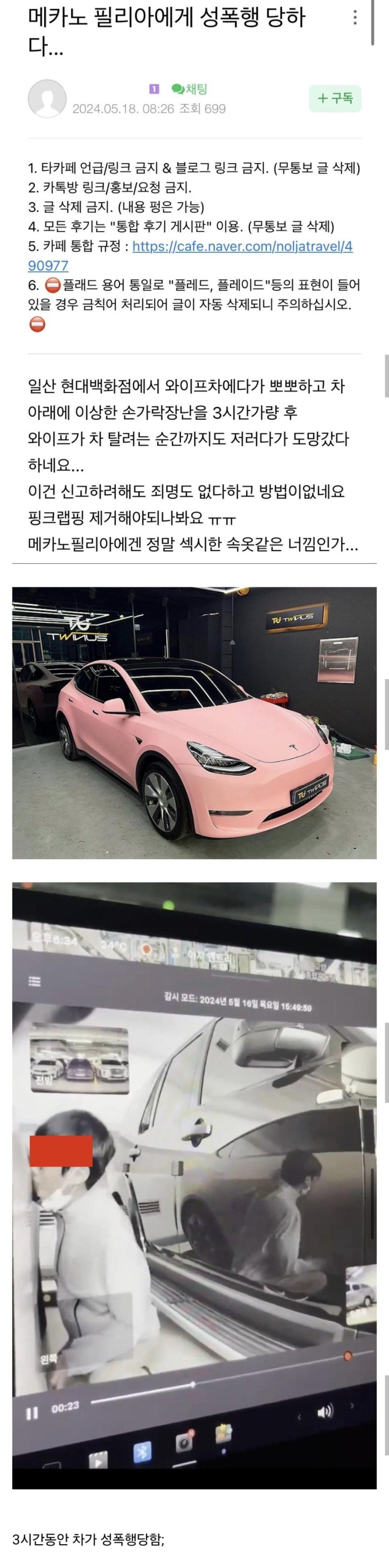 성폭행 당한 핑크색 테슬라 차 근황.jpg