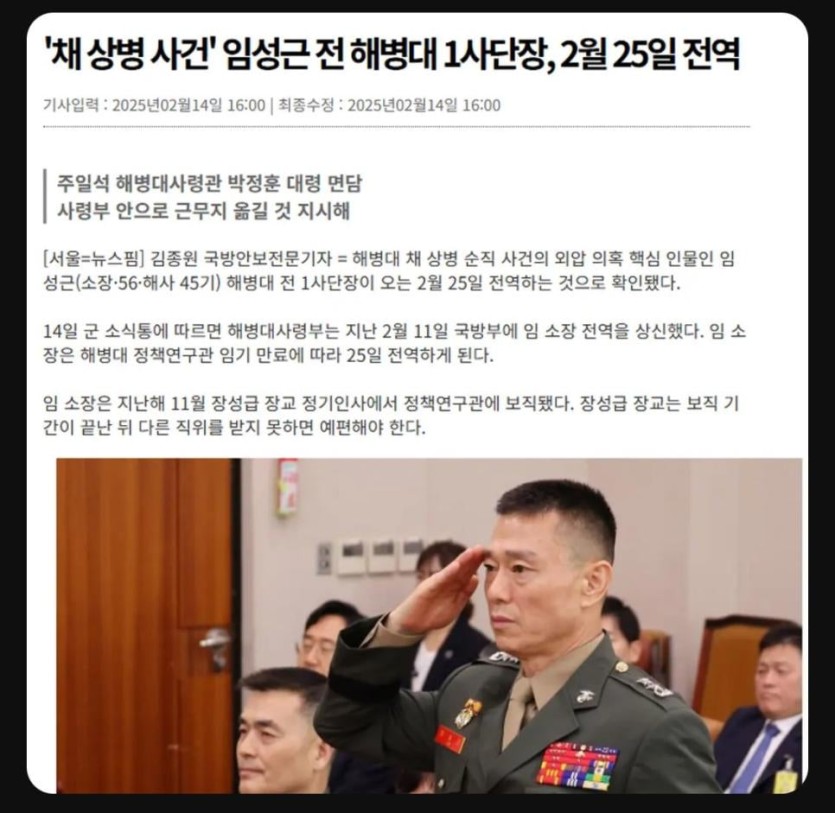 채상병 사건 사단장 임성근, 처벌없이 전역